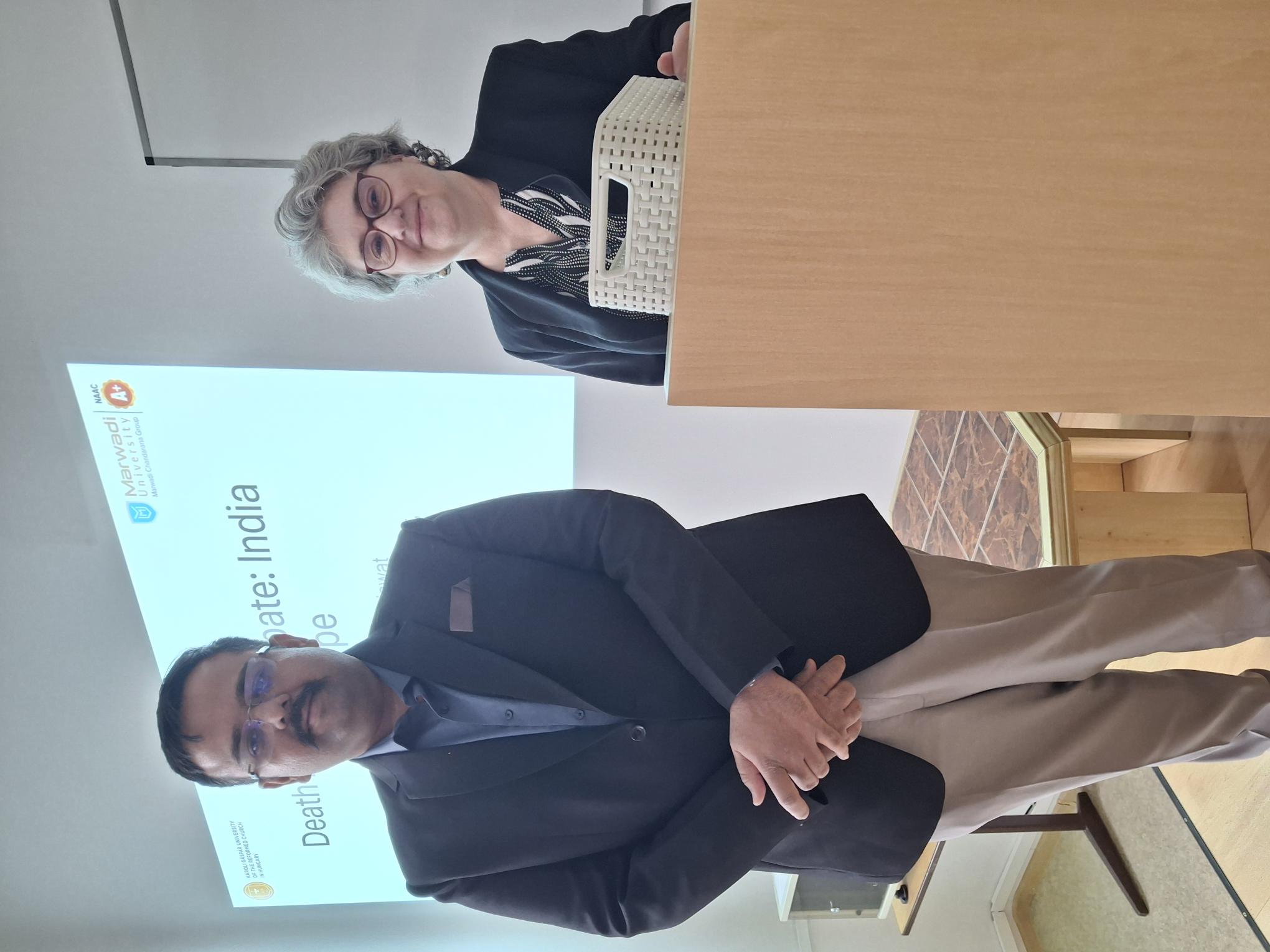 Dr. Anugrah Pratap Singh Rajawat, a Marwadi University oktatója Erasmus program keretében a Károli Gáspár Református Egyetem Állam- és Jogtudományi Kar vendégeként tartózkodott Karunkon. Látogatása során a Kar vezetésével is találkozott: Prof. Dr. Tóth J. Zoltán dékánnal és Prof. Dr. Boóc Ádám DSc dékánhelyettessel, akikkel a nemzetközi tudományos együttműködés lehetőségeiről folytattak szakmai egyeztetést.